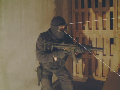 ▲視野を広くし、狙点は、前面。目標に近いため精密射撃をする必要がない。
